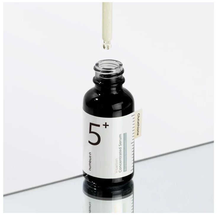 NUMBUZIN No.5+ Vitamin Concentrated Serum es un suero altamente concentrado que combina vitaminas poderosas como Glutatión, Vitamina C, Vitamina E, Coenzima Q10, Ácido Alpha Lipóico, Niacinamida, Ácido Tranexámico y Alfa Arbutina.