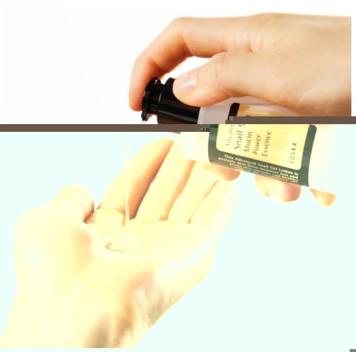 Se trata de una esencia concentrada que contiene un 96% de mucina (más conocida como baba de caracol) filtrada que no daña la piel y es eficaz para reparar el daño causado por diversos factores como la exposición al sol y el acné, además de mejorar la elasticidad de la piel, reducir arrugas y mantener un nivel de hidratación adecuado durante todo el día