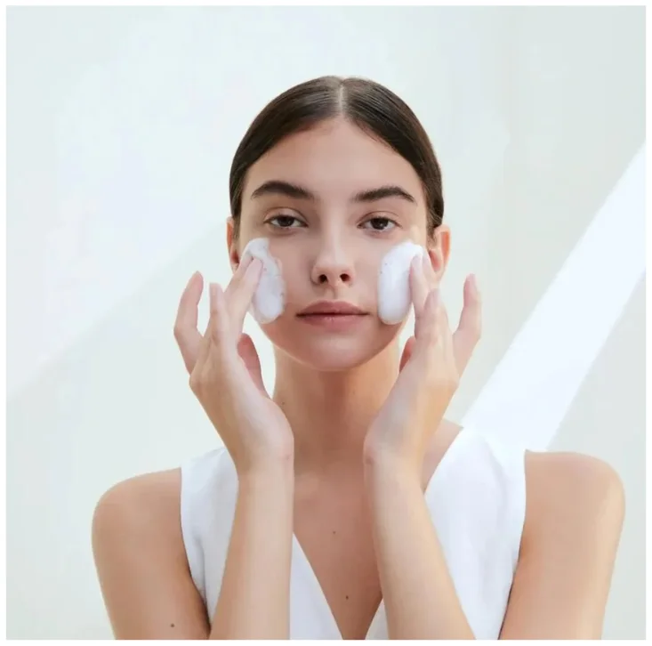 Aplica una cantidad moderada en las palmas de las manos sobre el rostro mojado, masajea tu piel suficientemente y enjuaga con abundante agua tibia. Luego, sigue con tu rutina aplicándote la loción tónica y los pasos correspondientes.