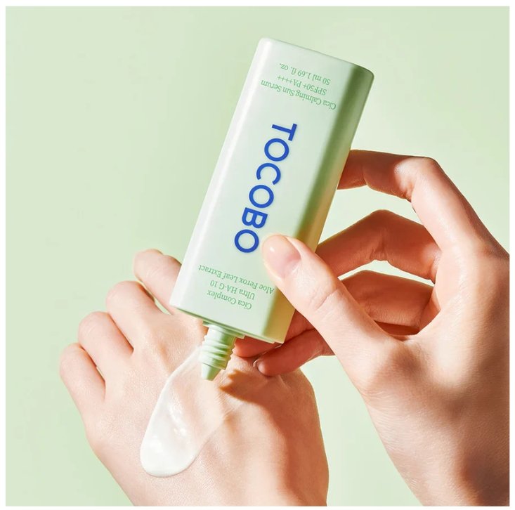 El Tocobo Cica Calming Sun Serum SPF50+ PA++++ es un sérum solar ligero, calmante e hidratante, diseñado para proteger la piel del daño solar mientras proporciona alivio inmediato y una hidratación profunda. Su fórmula está enriquecida con Cica fermentada de bajo peso molecular, ácido hialurónico de 10 capas y extracto de aloe vera, que ayudan a calmar, refrescar y fortalecer la barrera cutánea.